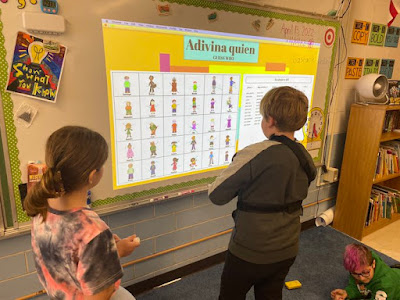 In World Language this week with SeƱora LeVangie and SeƱora DellaMonica, grade 4 students used the game Guess Who to practice communicating about clothing, colors, and descriptions. ¡Adivina quien!